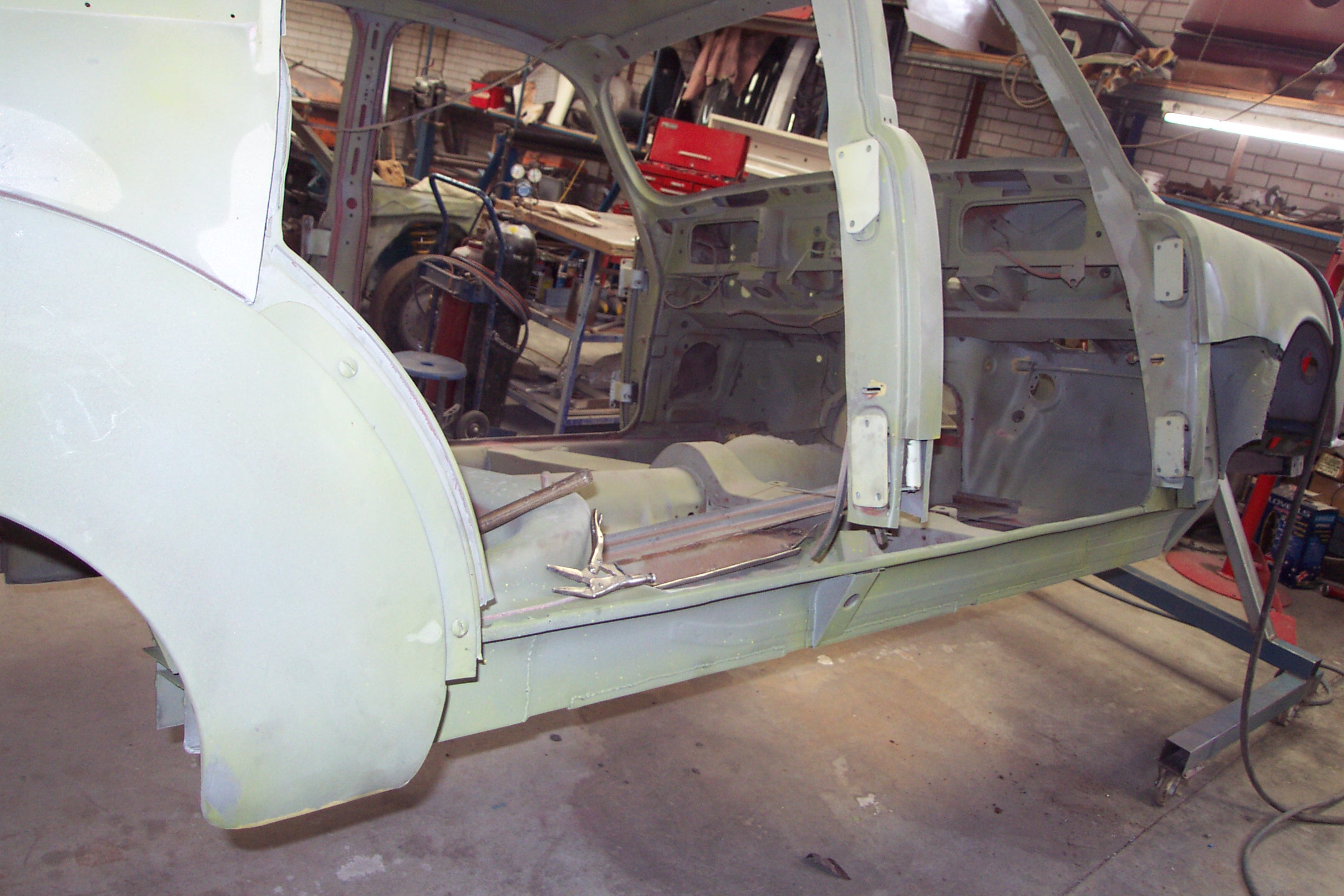 The external section removed and the internal section repaired. The lower A & B Pillar sections removed in preparation for the sil panel section replacement.