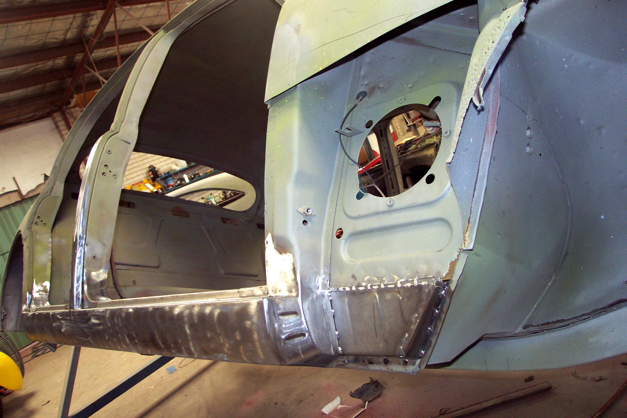 The lower A-Pillar section fabricated in two section, completing the repairs of this area.