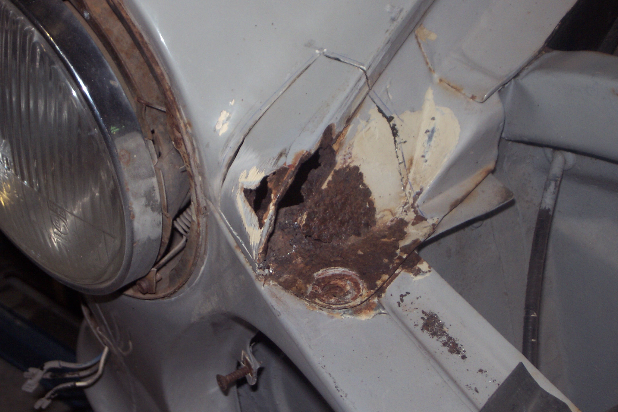 The picture illustrates the RH Fender -Front Section corrosion damage before fabrication and replacement.